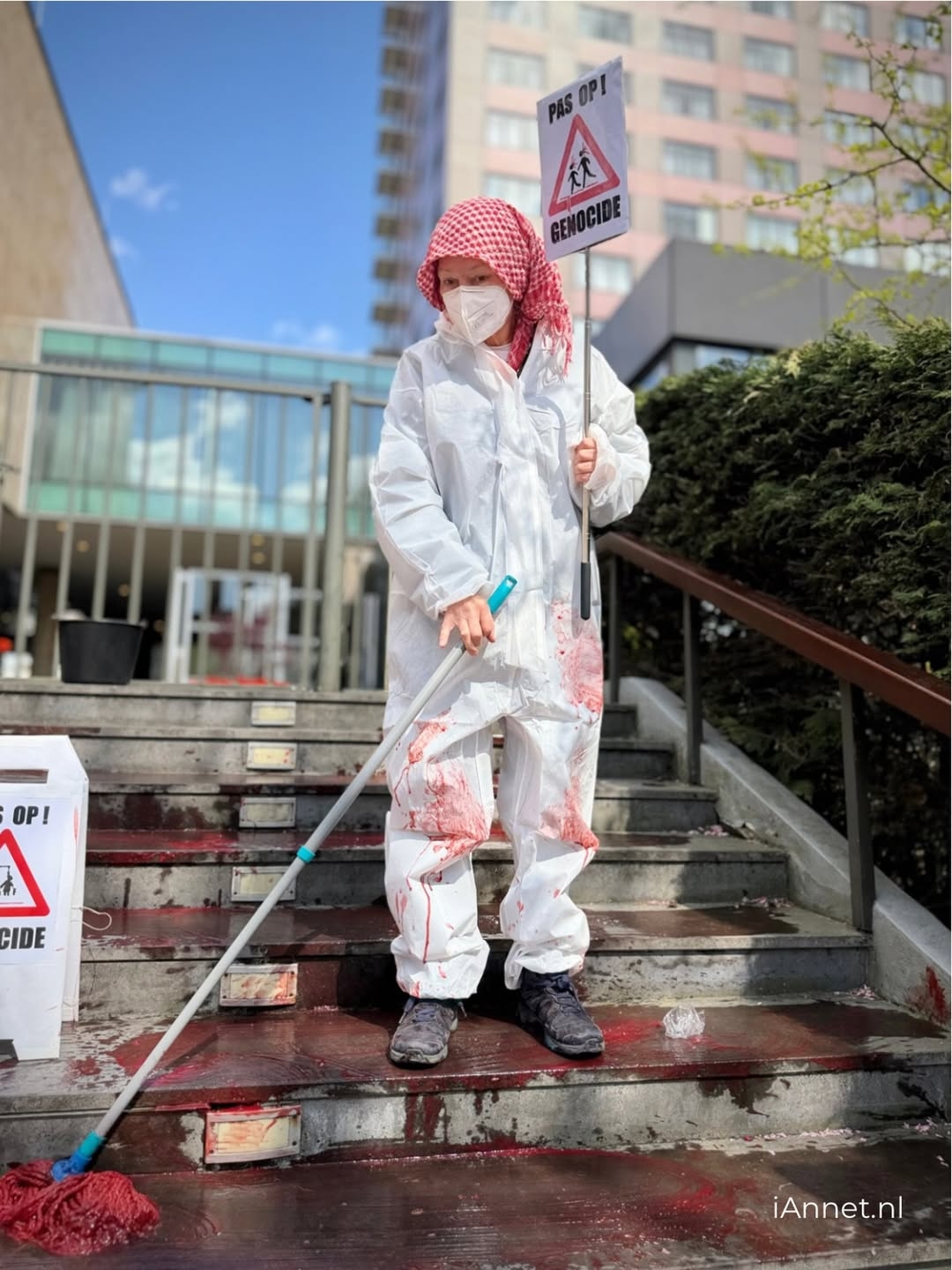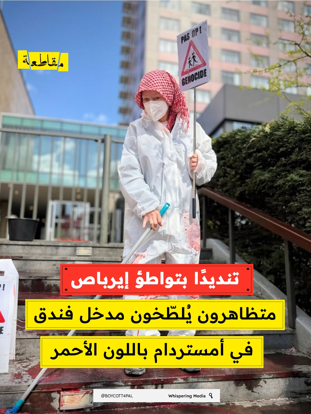 استهدف ناشطون بالطلاء الأحمر مدخل فندق "أوكورا" بالعاصمة الهولندية أمستردام، تزامنًا مع انعقاد اجتماع لمساهمي شركة "إيرباص" داخل الفندق، احتجاجًا على استمرار تصدير تقنياتها العسكرية لجيش الاحتلال الإسرائيلي.