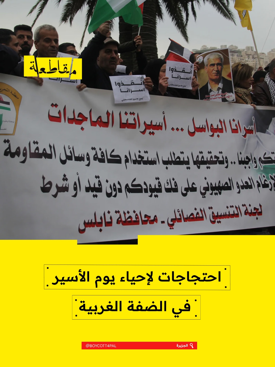 شهدت مدن الضفة الغربية، بما فيها رام الله والخليل، تظاهرات حاشدة إحياءً ليوم الأسير الفلسطيني، في مشهد طغت عليه مطالب الإفراج عن المعتقلين والتنديد بالتصعيد الإسرائيلي داخل السجون.