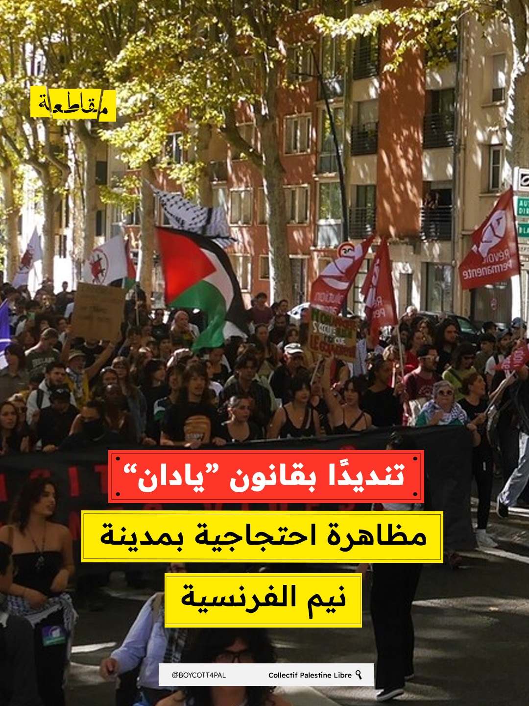 نظمت مجموعات تضامنية في مدينة نيم الفرنسية، بالتعاون مع منظمة فلسطين في نيم، وقفة احتجاجية وحملة توزيع مناشير تنديدًا بمشروع "قانون يادان" الذي يسعى لتجريم مناهضة الصهيونية.