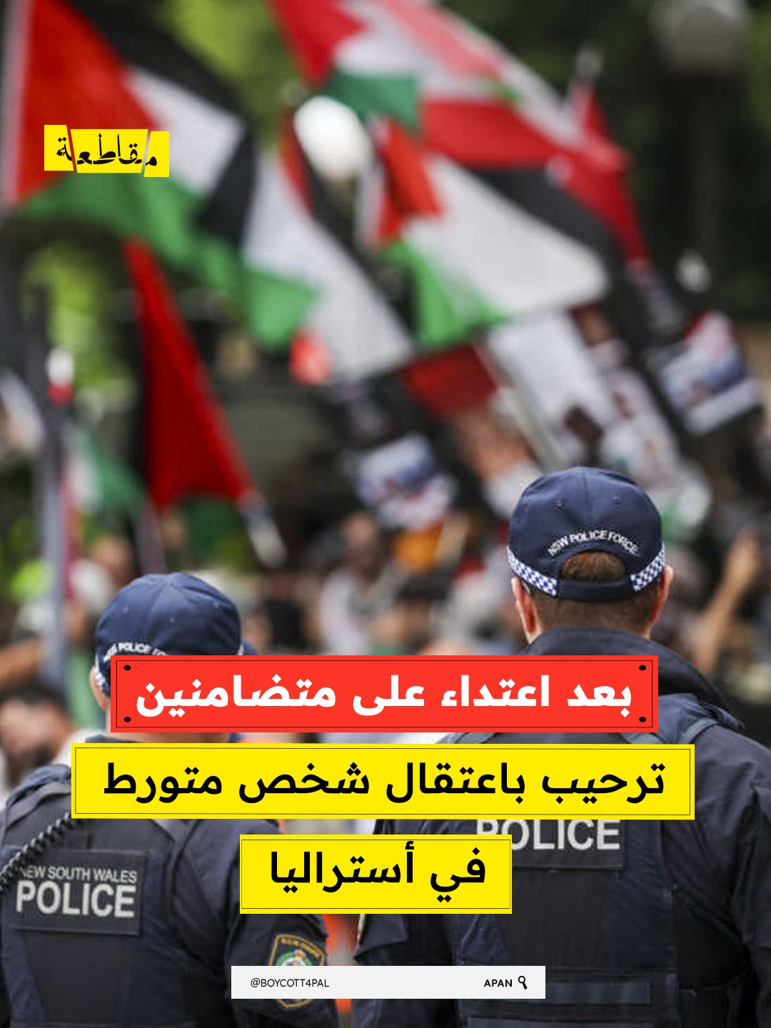 رحبت شبكة مناصرة فلسطين في أستراليا باعتقال السلطات لشخص متورط في هجوم عنيف استهدف نشطاء حركة المقاطعة وسحب الاستثمارات في شوارع مدينة سيدني.