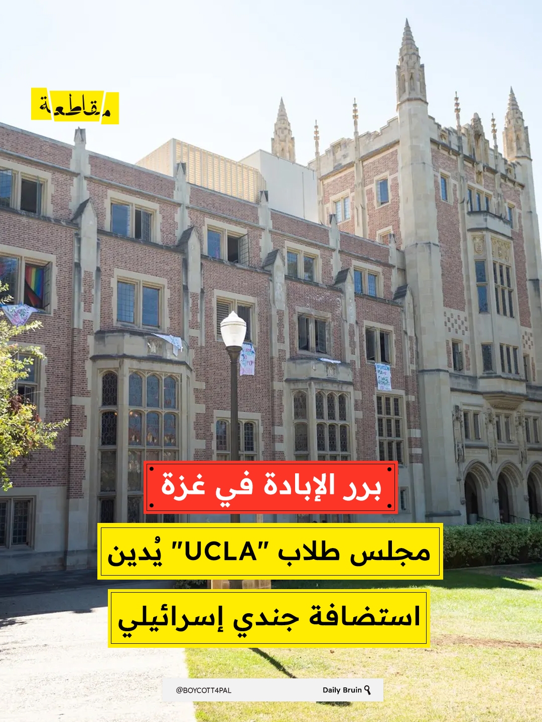 أقر مجلس طلاب جامعة كاليفورنيا في لوس أنجلوس (UCLA) بالإجماع رسالة تدين استضافة الحرم الجامعي جندي إسرائيلي سابق، مؤكدًا أن الفعالية سعت لتبرير العنف ضد الفلسطينيين وتضخيم روايات أحادية تطمس جرائم الاحتلال.