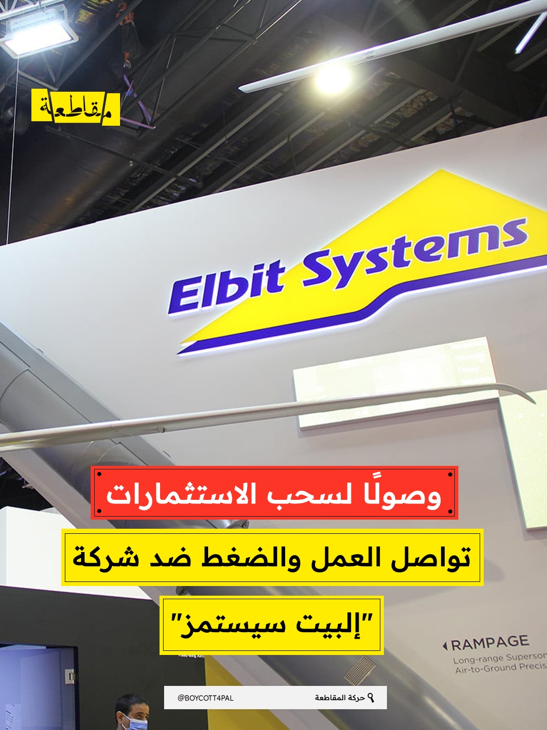 أطلقت حركة المقاطعة نداءً لتكثيف حملات الضغط والعمل المباشر ضد شركة "إلبيت سيستمز"، بهدف إغلاق مرافقها وقطع التمويل عنها باعتبارها المورد الرئيسي للأسلحة المستخدمة في حرب الإبادة الجماعية ضد الفلسطينيين.