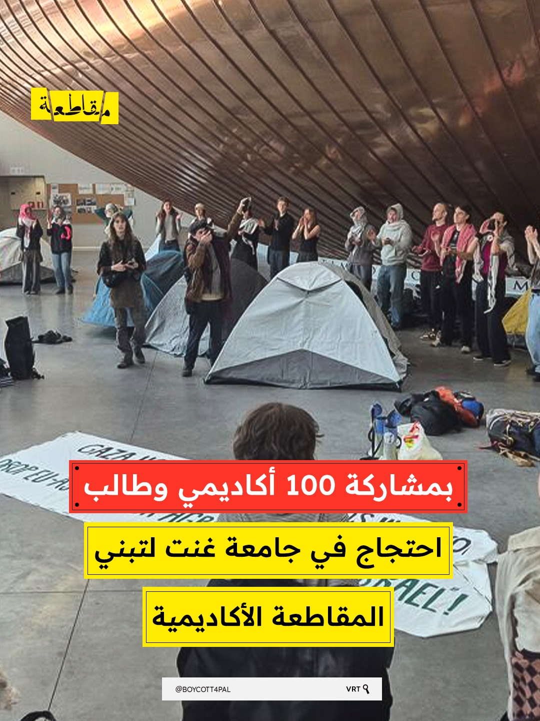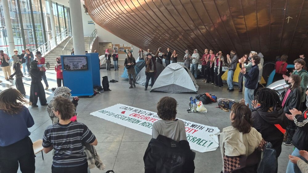 اعتصم نحو 100 ناشط من الطلبة والأكاديميين مبنى "كوبور" بجامعة غنت البلجيكية أمس الأربعاء، احتجاجًا على استمرار الشراكات الأكاديمية والبحثية مع مؤسسات الاحتلال وتواطؤ الجامعة في تمويل انتهاكات حقوق الإنسان.