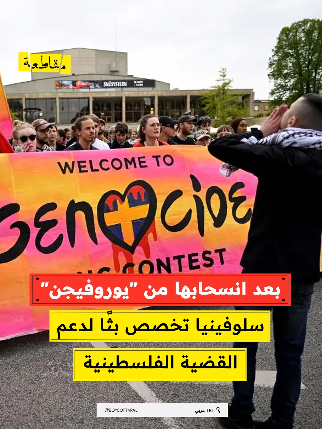 أعلنت سلوفينيا انسحابها من مسابقة الأغنية الأوروبية يوروفيجن 2026، احتجاجًا على السماح لإسرائيل بالمشاركة، مؤكدةً أنها ستبث برامج خاصة تسلط الضوء على القضية الفلسطينية بالتزامن مع موعد المسابقة.