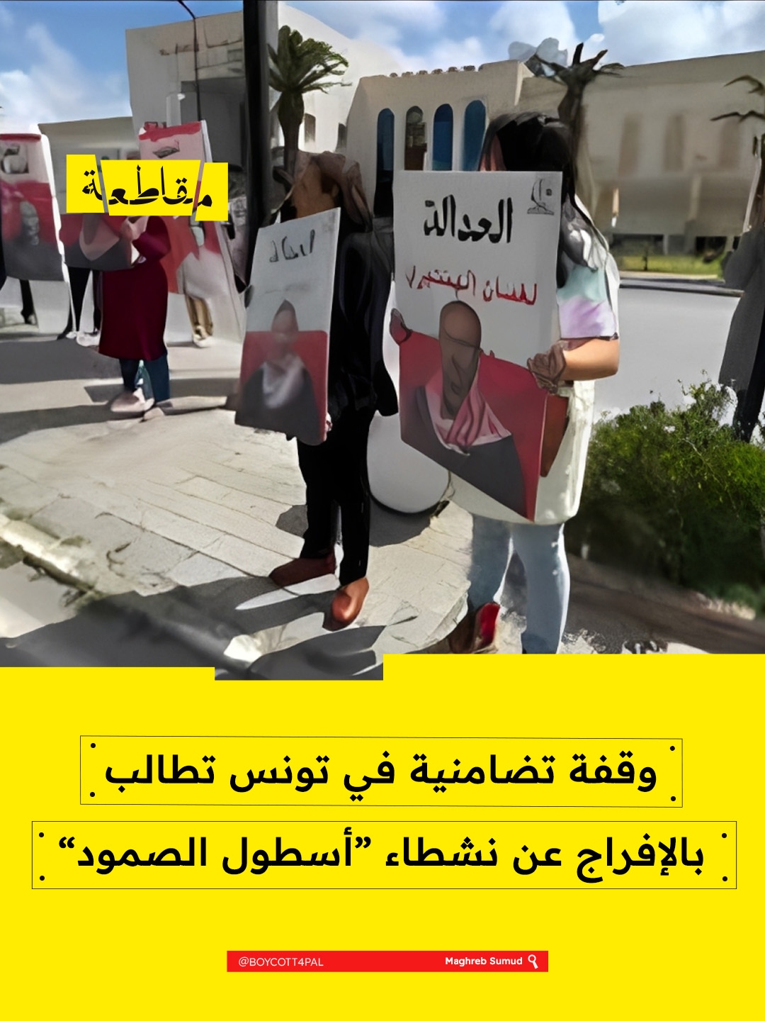 نُظّمت وقفة تضامنية أمام مقر القطب القضائي المالي في شارع محمد الخامس، للمطالبة بالإفراج عن نشطاء “أسطول الصمود” المعتقلين في السجون التونسية.