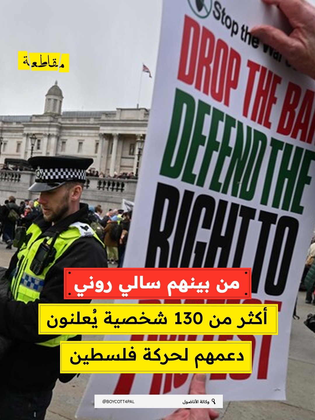 من بينهم سالي روني.. أكثر من 130 شخصية يُعلنون دعمهم لحركة فلسطين
