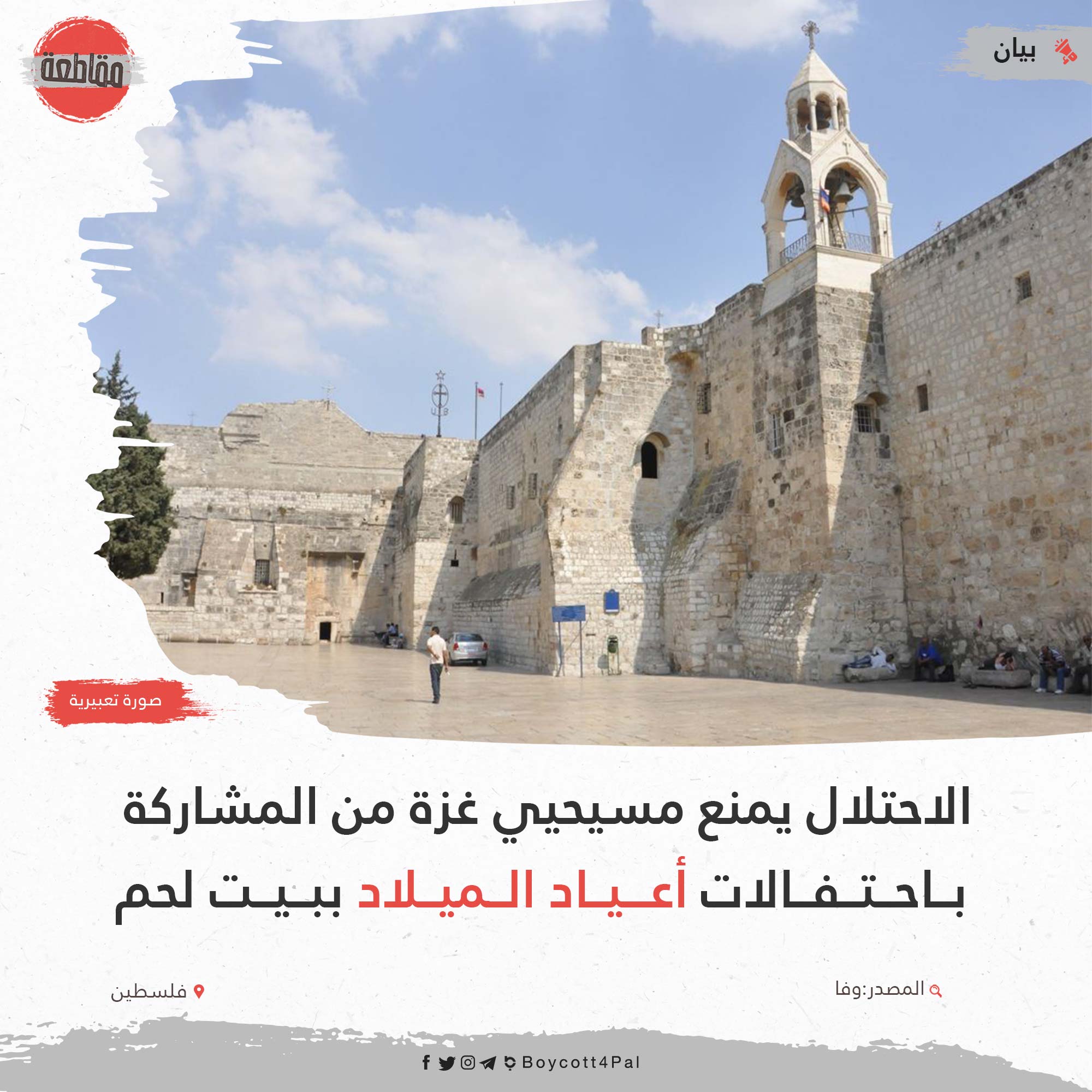 منعت سلطات الاحتلال الإسرائيلي، أمس الخميس، نحو 200 مسيحي من قطاع غزة، من التوجه إلى مدينة بيت لحم، للمشاركة في احتفالات أعياد الميلاد المجيدة.