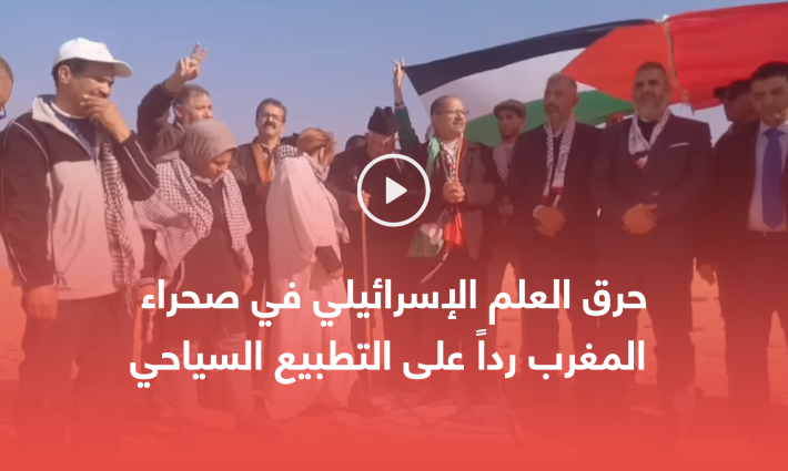 أحرق ناشطون مغاربة العلم الإسرائيلي في صحراء مرزوكة رداً على التطبيع السياحي، بعد ساعات من الإفراج عن رئيس المرصد المغربي لمناهضة التطبيع أحمد ويحمان الذي سجن الشهر الماضي بسبب اعتراضه على وجود شركة إسرائيلية في معرض للتمور بالمغرب.