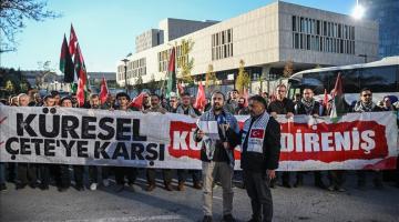 تنديدًا باستمرار العدوان وقفة احتجاجية أمام السفارة الأمريكية في أنقرة تضامنًا مع غزة