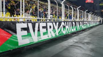 "إذا بكى طفل فلا أهمية للجغرافيا".. مشجعو نادي فنربخشة التركي يدعمون أطفال غزة