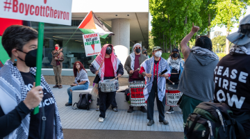 اعتصام أمريكي أمام محطة “شيفرون” تنديدًا بدعمها للإبادة