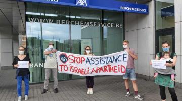 بروكسل.. نشطاء يطالبون شركة AXA بوقف استثماراها مع الجهات الداعمة للاحتلال