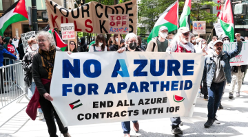 نقف مع كل فلسطيني يتعرض للقصف والمراقبة الجماعية بدعم من مايكروسوفت -حملة لا لأزور للفصل العنصري
