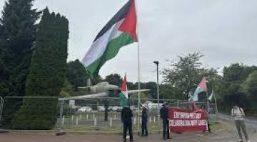 مئات المتظاهرين يحاصرون قاعدة سلاح الجو الملكي البريطاني.. نشطاء من "حركة فلسطين" يستهدفون شركة "نامو" في فنلندا