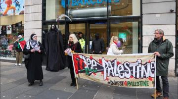ممول آلة الإبادة أنصار فلسطين يعتصمون خارج بنك "باركليز" في غلاسكو