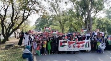 تلاميذ المدارس في آزاد كشمير يتظاهرون تضامنًا مع الفلسطينيين
