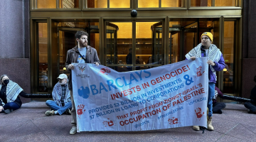 داعم للإبادة!.. متظاهرون يغلقون مداخل مكتب باركليز في شيكاغو
