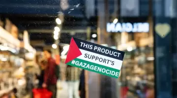 بملصقات داخل سوبر ماركت ناشط في أنتويرب يدعو إلى مقاطعة المنتجات الإسرائيلية