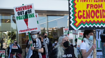 احتجاجات أسبوعية عند “شيفرون” ضد تزويد الاحتلال بالوقود