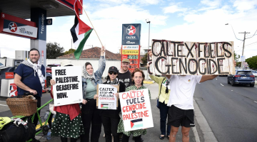 احتجاج أسترالي أمام محطة “كالتكس” المزودة للاحتلال بالطاقة