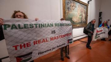 أنصار فلسطين يحتلون معرض "أوفيزي" في فلورنسا لتعاونه مع الاحتلال