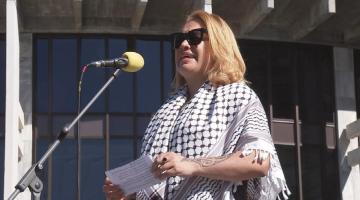 خلال احتجاج.. عمدة مدينة ويلينغتون في تكساس تقود دعوات وقف النار