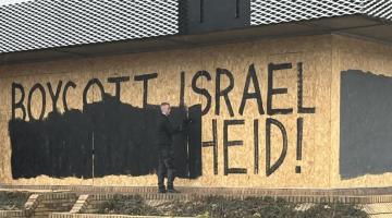 كتابات "مقاطعة إسرائيل" على المبنى في كولن