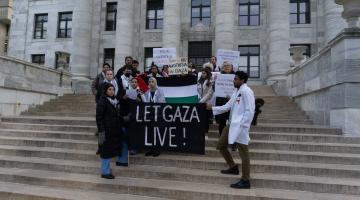 دعوا غزة تعيش.. طلاب كلية الطب بجامعة هارفارد يحتجون ضد قتل عاملي الصحة