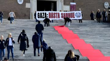 أنصار فلسطين في روما يحتجون أمام كنيسة سانتا ماريا