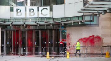 تنديدًا بالتواطؤ الإعلامي .. احتجاج أمام BBC رفضًا لصمتها أمام محاكمة "فلتون 24" والإبادة