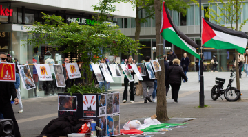 في بروكسل مظاهرة مؤيدة لفلسطين في سوق عيد الميلاد