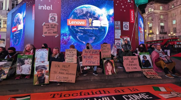 تنديدًا بالتواطؤ الإعلامي .. احتجاج أمام BBC رفضًا لصمتها أمام محاكمة "فلتون 24" والإبادة