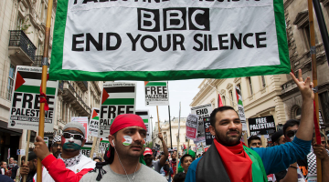 "تضامنًا مع مضربي "فلتون24" ..رفع لافتة احتجاجية أمام "BBC" في غلاسكو