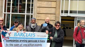 يستثمر مع شركات الإبادة وقفة احتجاجية أمام بنك "باركليز" في بريطانيا
