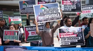 مظاهرة كورية دعمًا لفلسطين ولبنان وإيران