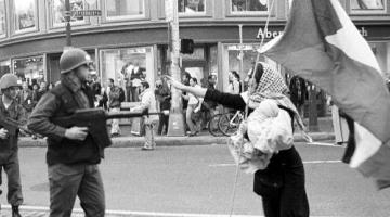 صورة من مشهد تمثيلي خلال فعالية تضامنية مع الشعب الفلسطيني في هارفارد عام 2002